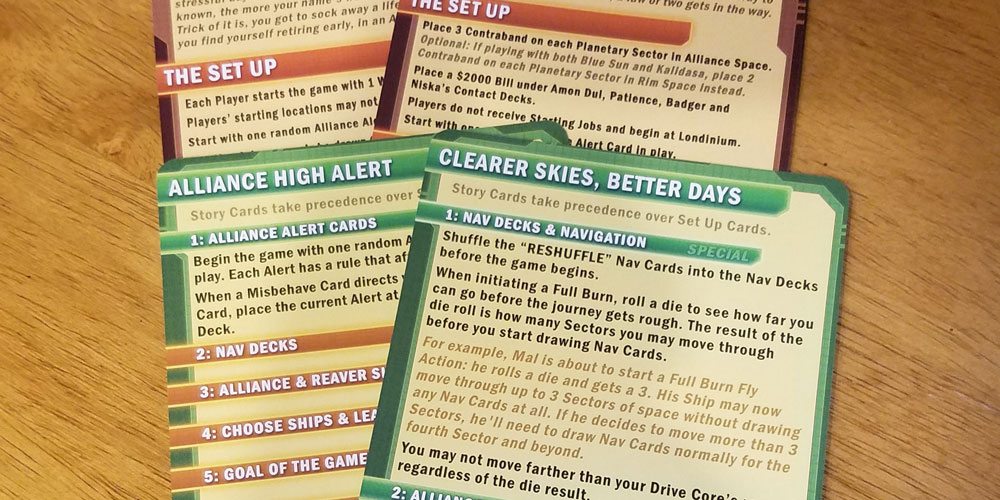 The expansion also adds an entirely new type of card: Alliance Alerts. These cards come in to play via certain Aim to Misbehave cards (obviously from the ones in this expansion) as well as the new Story and Setup cards that also come with the expansion. These cards pose additional challenges to players by limited where they can purchase items, who they can do jobs for, and other bad stuff. The expansion also includes additional Warrant and Wanted tokens.