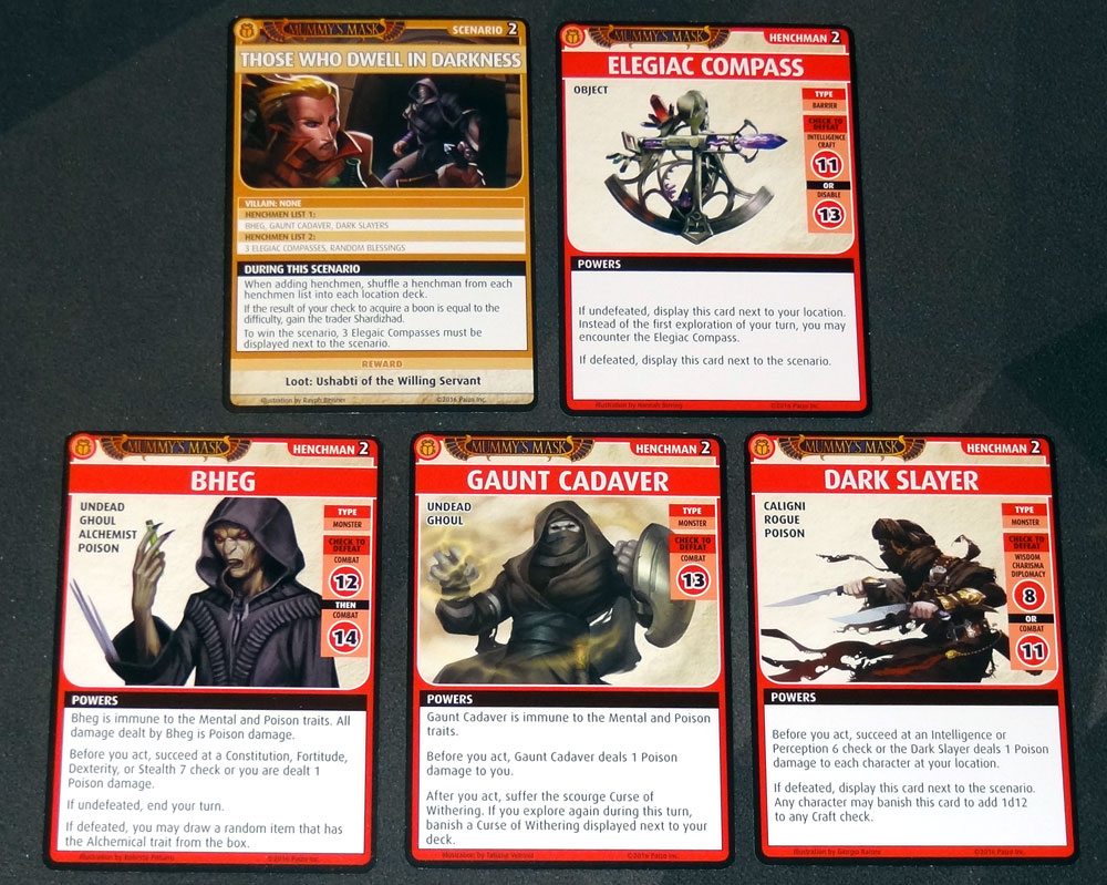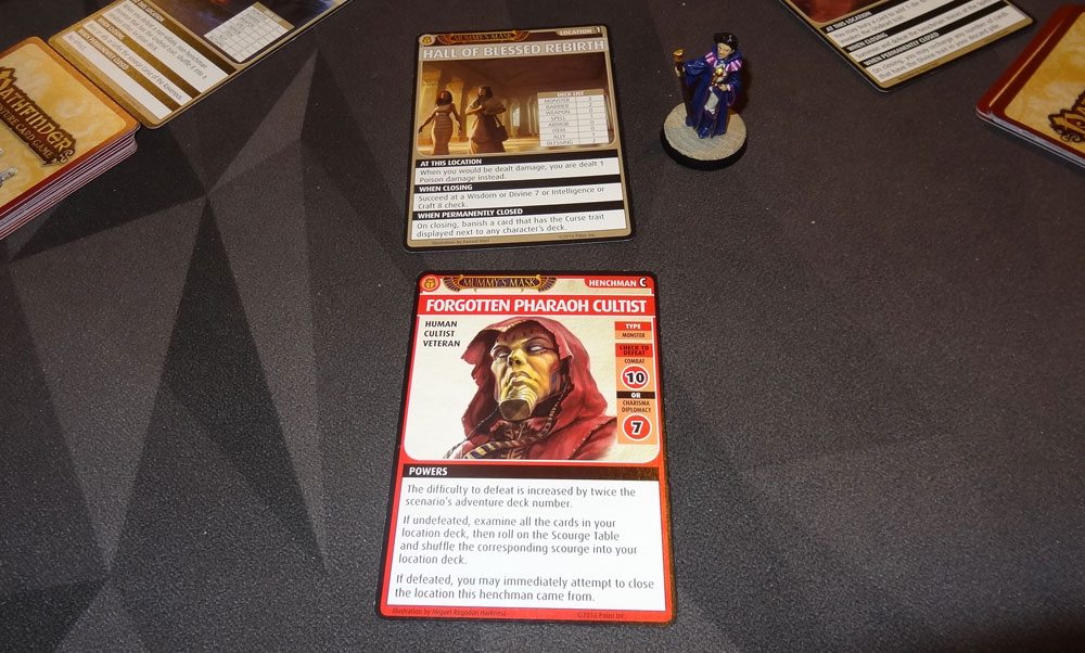 It took a while to find another henchman—Ahmotep finally encountered one at the Hall of Blessed Rebirth with only two cards left in the location. She defeated him and closed the location.