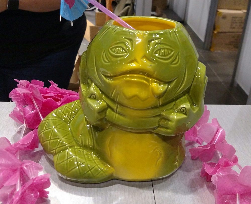 Exclusive to ThinkGeek is a second set of the fun Geeki Tikis. The six-mug set includes a Jawa, C-3PO, a Wampa, Tusken Raider, Tauntaun, and Wicket. An additional exclusive Tiki pairing features Jabba the Hutt and Salacious Crumb. A live Sy Snootles lounge appearance is not included in the purchase price.