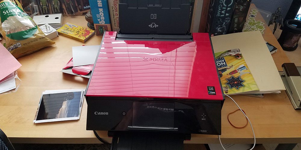 When Canon offered to send a review model of their newest all-in-one inkjet, the Pixma TS9020, I agreed to take a look, just to see how far ink jets have come since the last time one sat in my house. Overall, I ended up being very impressed with it, and I have to admit that I’m bummed that they are asking that I return the review unit. (Although I’m not nearly as bummed about it as my 15-year-old daughter is.)