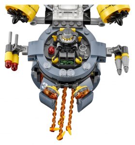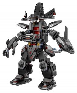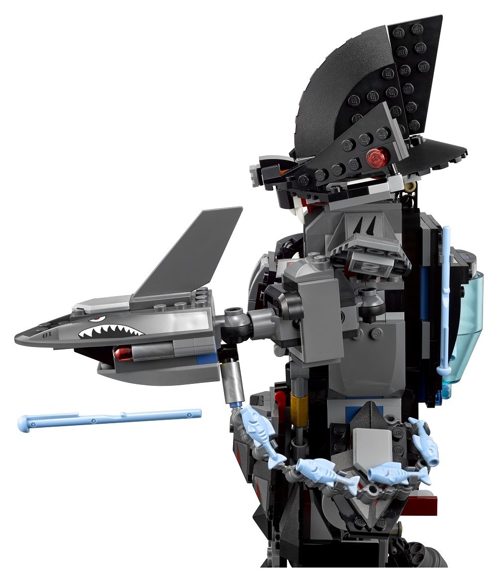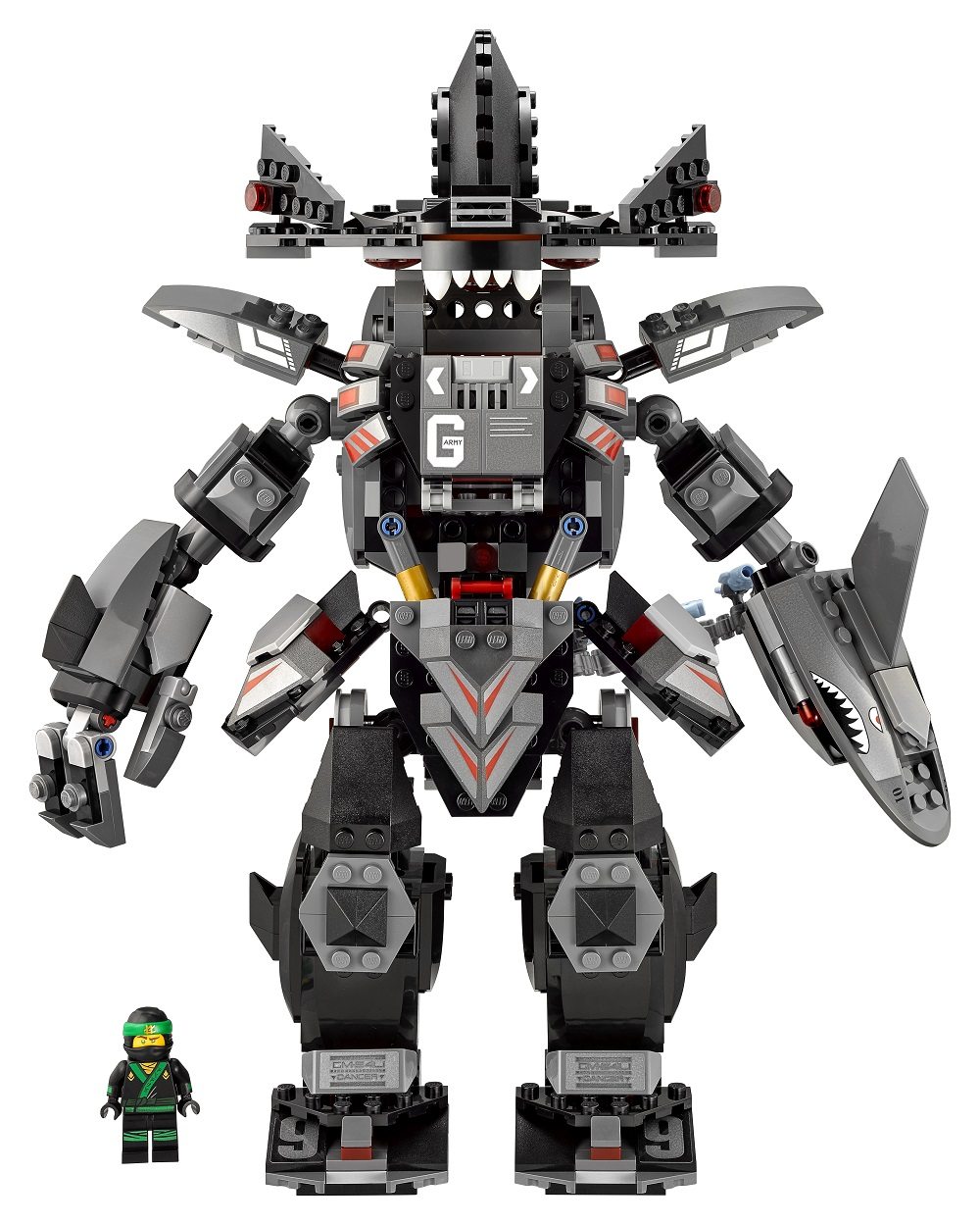 70613 Garma Mecha Man – Help Lloyd protect civilian Pat from attack by Garma Mecha Man, featuring spring-loaded shark blaster, opening cockpit for Garmadon, ammo belt, and fish tank. [$59.99, 747 pieces, Available at Target stores nationwide]