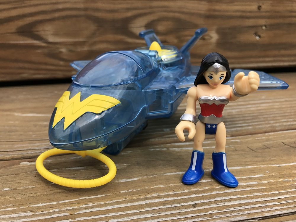 There aren’t a lot of “bells and whistles” on either, but when you’re talking about toys primarily aimed at preschool-aged kids, they don’t need to be super fancy. The Invisible Jet has a firing lasso, a spinning turbine, and space in the cockpit for Wonder Woman to take the controls.