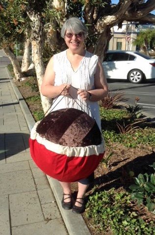Find a small garden stone and paint it blue. Using plain craft glue or a glue gun, draw a small line down the center top. Attach the ends of some red yarn along the glue line. Let it dry, then trim it to make it even. Carefully unravel the yarn pieces with a toothpick or pin to give it a fuller “mohawk” hair cut. You might need to do a little final trimming or shaping after this.