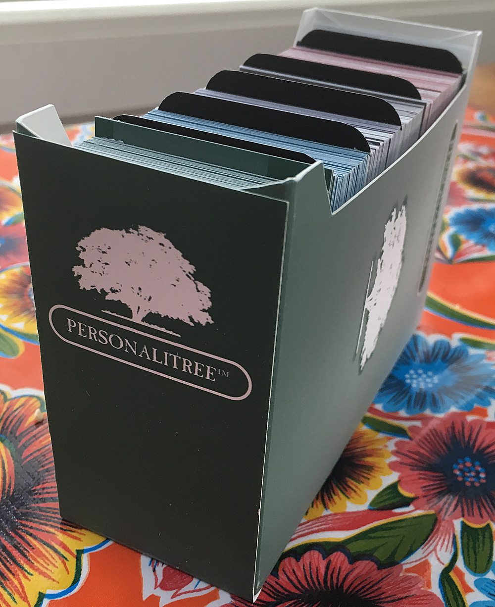 Personalitree is a 2-player game for ages 18 and up. It is currently seeking funding on Kickstarter, with a pledge level of $25 (plus shipping) for a copy of the game. My wife and I had planned a date night for our anniversary the day the game arrived and we decided to play the game instead of going out! The game was designed by Jeff Wong and is based on the New York Times article, “To Fall in Love With Anyone, Do This” by Mandy Len Catron.