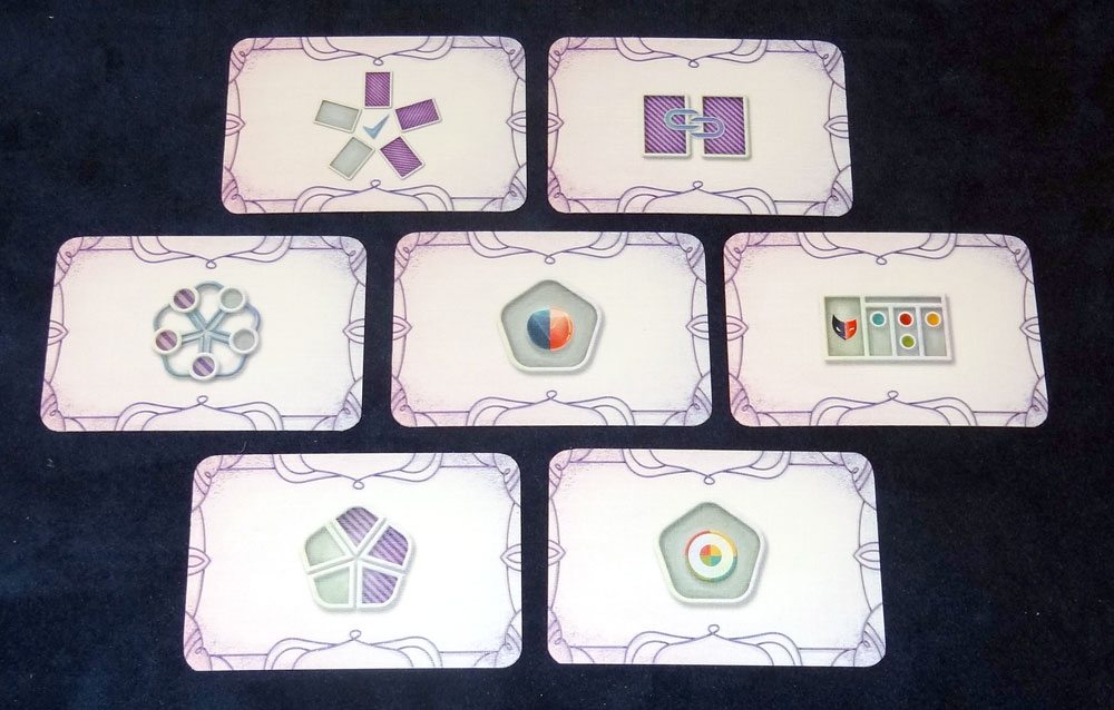 You also set aside one common aspiration cards face-up, and one face-down from each team. (Again, if your team card matches the common card, draw a new one and shuffle the first one back in.) These will be used in end-game scoring.