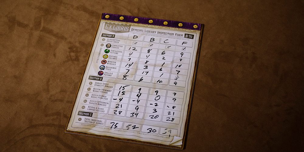 Should a player meet the end game condition, the game ends and scoring is tabulated on the dry erase board. The player with the most points wins and is crowned Grand Librarian.