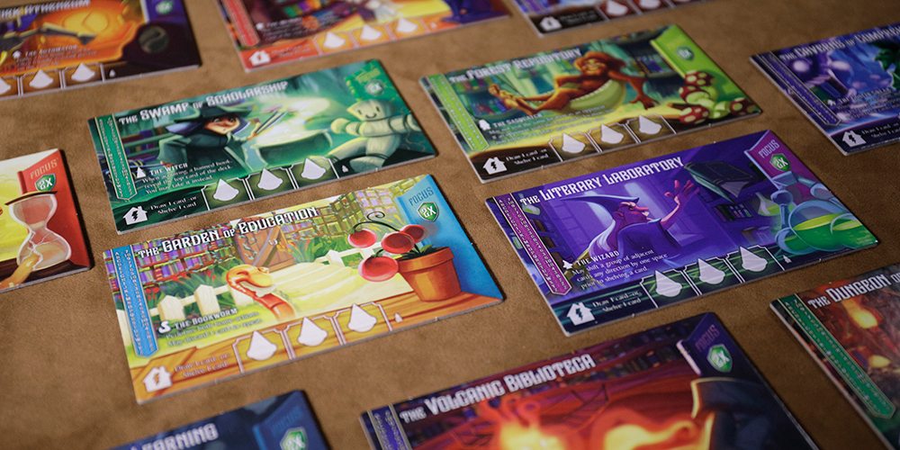 Most effects are immediate, though there are some that resolve at the end of the round. After all assistants have been placed and all effects resolved, Players check to see if anyone has met the end game condition — a set number of cards shelved in their library. That number adjusts, depending on the number of players in the game. If that condition has not been met, assistants are retrieved, the location tiles are considered and the tile with the lowest identifier number on it is moved to the main board, providing players with an expanding number of choices to visit as the game moves on. Old location tiles and any Book cards are moved to a discard area and players are ready to begin the next round, by again setting out location cards equal to the number of players.