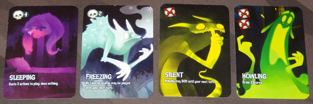 And, of course, you can bluff by playing an incorrect scare face-down. Maybe all those face-down scares will tempt somebody to waste their turn yelling “Boo!” so that you can buy yourself more time to get the right cards in hand!