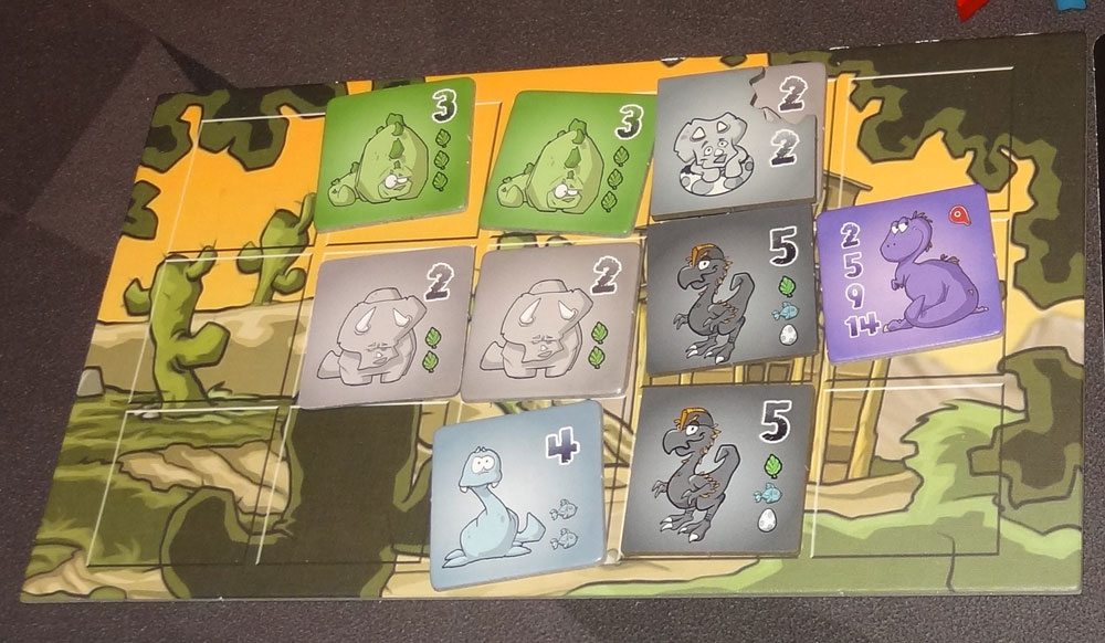 Since Hatchlings is an expansion, I’ll just go over the new changes and skip most of the gameplay. For how to play the base game, please see my review of Dino Dude Ranch.