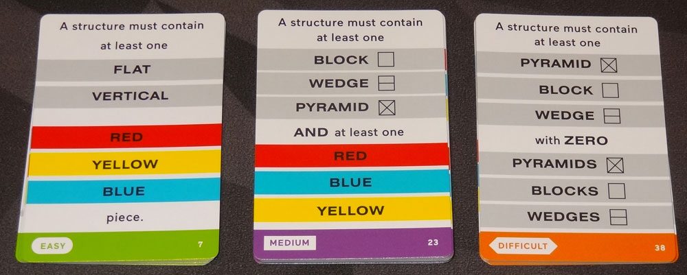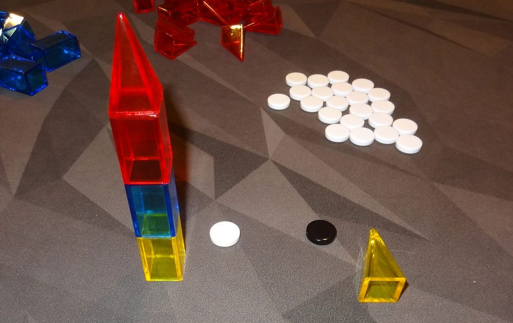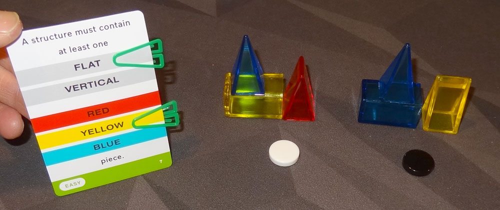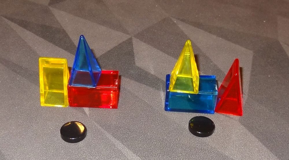 The new pieces are fantastic, and allow for a lot of cool structures (along with all those new rules). There are no longer different sizes of pyramids and only three colors, but you really don’t have to worry that it limits the types of rules you can create. I suppose if your group gets really good at guessing rules, you could always throw in the Pyramid Arcade set and use multiple pyramid sizes and even more colors, but that increases the complexity significantly, so I wouldn’t recommend it for novices.
