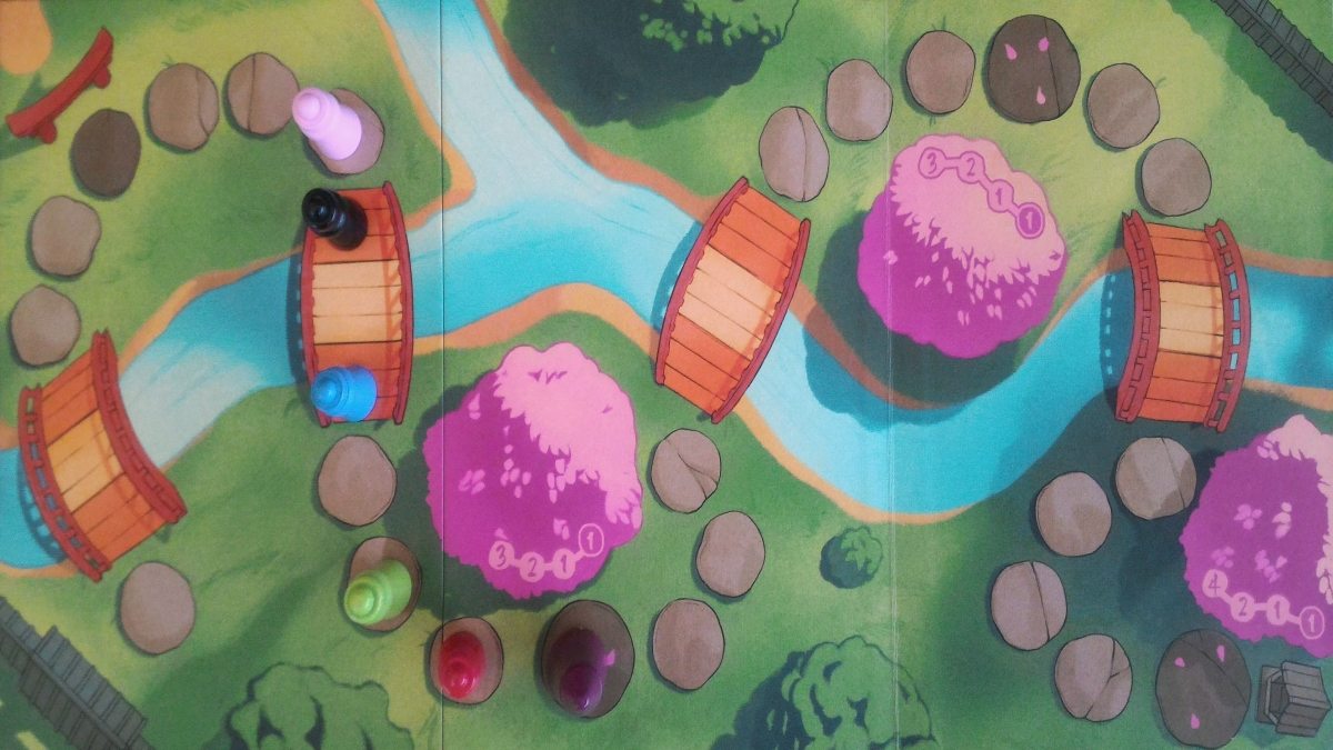 This leads inevitably to Gravwell levels of hilarity, where your brilliant prepared move, sees you sailing backwards past your competitors as they completely outmaneuver you. That this outmaneuvering is often entirely unintentional, just adds to the amusement. Finally, there’s the procession of pawns and the queuing up at the various sakura spaces. This slow race to the front is reminiscent of Tokaido.