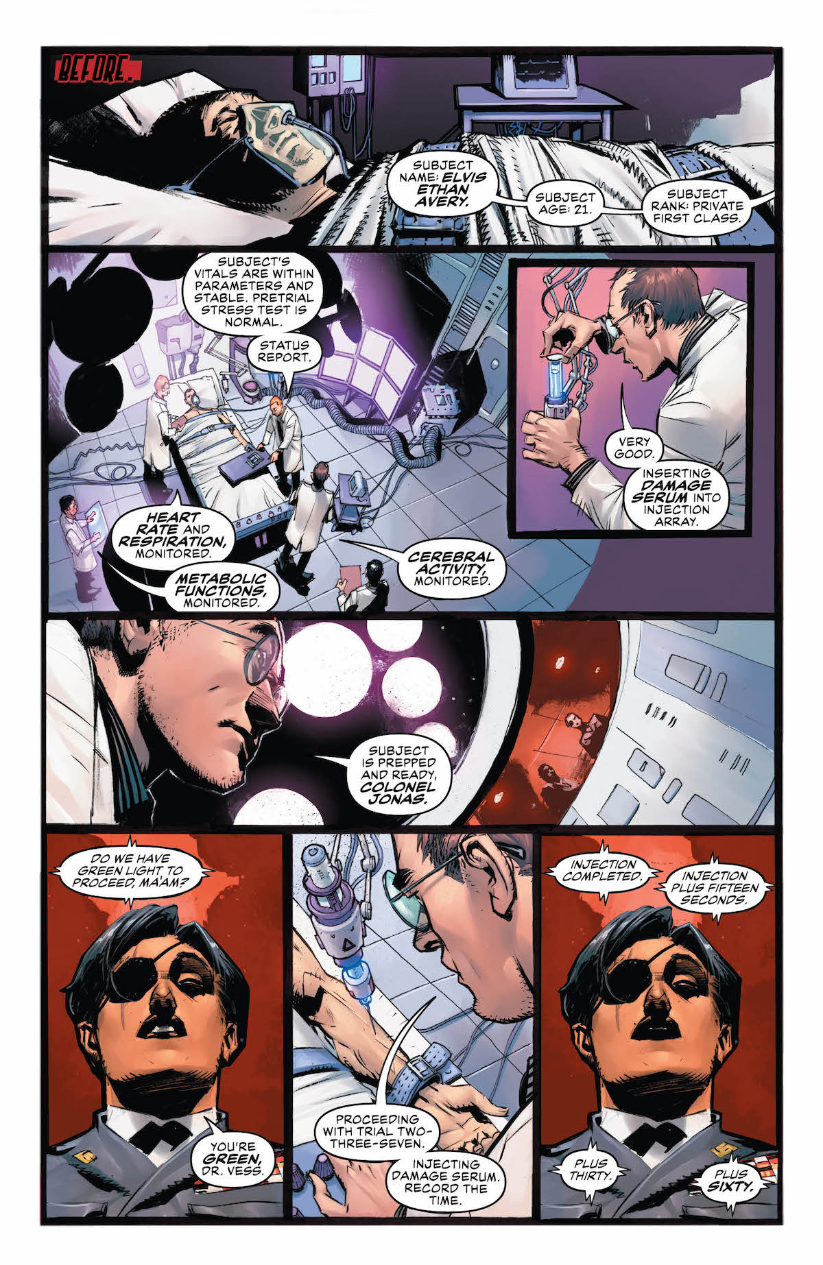 Ethan, meanwhile, has hitched a ride in the back of a long-haul truck. While he’s initially suspected of being a thief, the driver is compassionate and offers Ethan a job in his cousin’s farm crew. Flashbacks show Ethan’s transformation and don’t really illuminate anything about his past, and a new group of super-soldiers with impossible senses that Jonas hires to track Ethan don’t make much of an impression. Still, the issue might be the best of the series, given how it pares the concept down to its simplest elements – guy who wants to keep the monster at bay is forced into a situation where the monster is needed – and provides a compelling adversary in Poison Ivy. However, there’s one big issue with this series, and that’s that Damage remains its least interesting factor. Good art, decent writing, but that’s not enough if the title gives us zero reasons to care about its lead character, who remains a blank slate.