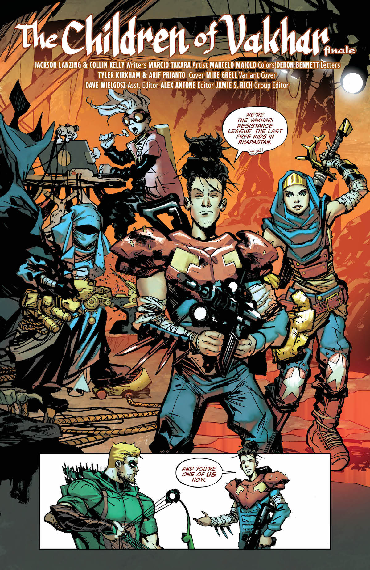 Ray: Green Arrow #40, the second part of Lanzing and Kelly’s stand-alone Green Arrow story is much stronger than the first, delivering a more nuanced take on child soldiers and the unintended consequences of interference in foreign countries. In the last issue, Green Arrow returned to the country of Rhapastan, where Deathstroke had destabilized the government years ago. He found a war-torn unstable nation that was currently ruled over by a ruthless child warlord known as Nothing. He attempted to take on the warlord but wound up being brutally shot and left for dead. This issue, he wakes up in an underground cavern and finds that he’s been healed by what seems to be a natural spring variant of the Lazarus Pits. From there, he meets a group called the Vakhari Resistance League, a quartet of teenage freedom fighters who have patterned themselves after the Justice League and are fighting to liberate their friends, family, and country from Nothing.
