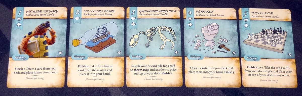 The Tuataras use the gold coins—there are various cards that will allow you to get gold coins from the supply. Once acquired, coins may be spent just as you would spend cards to pay for things, whether to buy cards from the market or pay for a “Spend” or “Finish” ability.