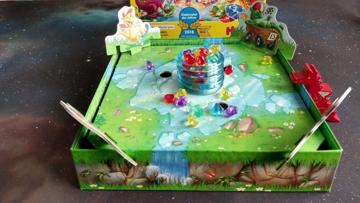 The game is simple to understand and easy to set up for smaller hands. It’s immediately accessible and engaging for younger players. On the surface, there’s no great tactics or thought required for adults, but it’s fun to play a few games. There’s something about those falling gems that keeps the game from becoming a chore.