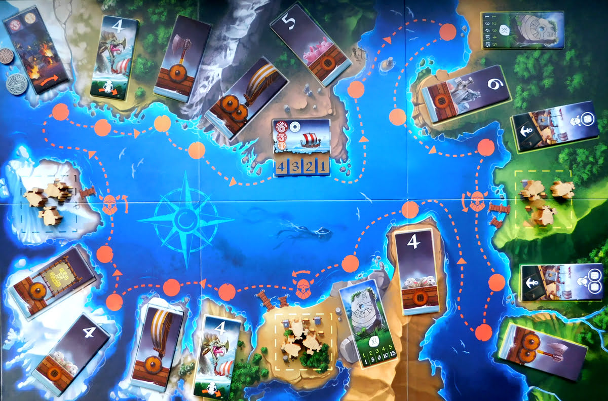 This keeps the rounds moving briskly and also provides the opportunity to use that mechanic to disadvantage your opponents. If you see a tile ahead that you know the next player badly needs, and you’re the only player between them and it, you might be able to go just far enough ahead that that tile is discarded before they even get their oars in the water. But be careful, Vikings hold grudges and they might just start plotting their revenge as soon as they’ve filled their longboat with bloodthirsty barbarians.