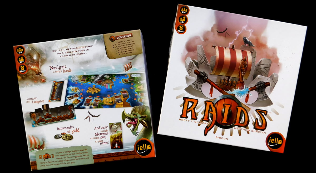 Iello makes pretty games that leap off the shelf with their bright color palette and the crisp graphic design. What’s more, they don’t skimp on the contents, either. The most pleasant surprise for me in Raids was that the coins used for scoring were all metal, an unnecessary but hugely appreciated bit of decadence that serves to further draw you in as you play, hefting the coins back and forth in your hands while cardboard chits would have been quickly relegated to the table and forgotten.