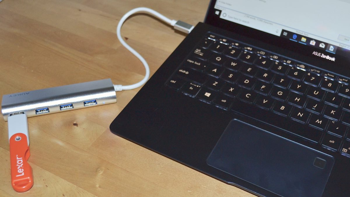 The company sent me a 4-port USB hub with a USB-C connector earlier this year, but I didn’t have any USB-C computers to try it out with. That changed when ASUS loaned me a ZenBook S for a long-term review (you can read the review of the laptop here if you’re interested). Like Apple’s MacBooks, the ZenBook S goes all-in on USB-C with no legacy ports.