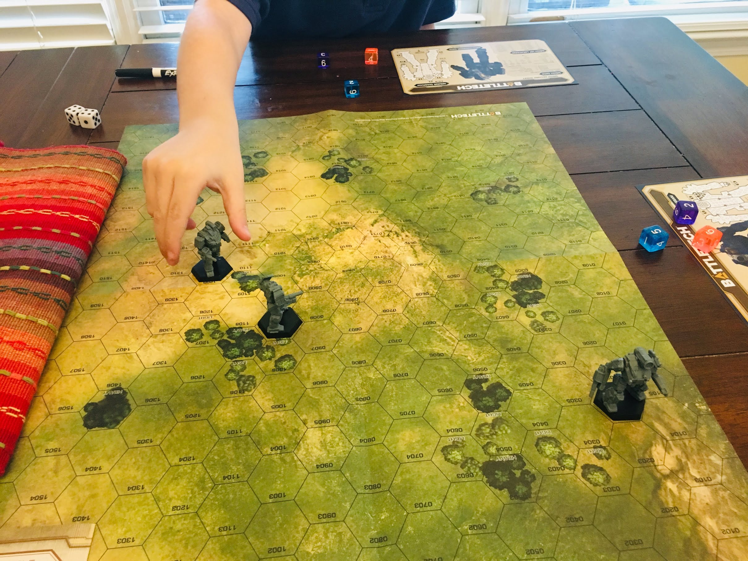 With the GATOR acronym, players will quickly figure out the combat part of the game. I played the game with my two boys (ages 11 and 8) and after only a couple rounds, they were both calculating their own TNs for attacks against Dad. I let them team up against me and they whooped me good once they figured out some basic tactics of working together to reach my blind spots. My 11 year old was screaming for another game and begging for me to invite some of his friends over to teach them. And we’re going to do exactly that — a BattleTech game at my house is scheduled in a few weeks with five of his friends.
