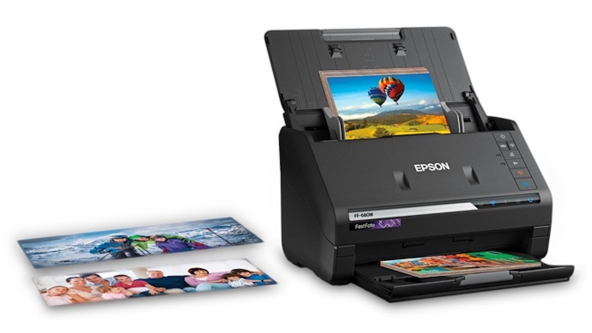 The new FastFoto can scan photos as fast as one per second at 300 dpi through the “SafeTouch” document feeder that will handle all the weird sized photos (even postcards and Polaroid-type instant photos or those that have been trimmed to remove anything, or anyone, that is not wanted in the image). The feeder has “single-step” technology for two-sided scanning, making sure that the handwritten notes on the back of the photos get saved along with the image.