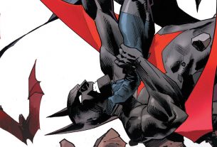 Ray: This arc of Batman Beyond has been dominated by two storylines, one much more interesting than the other – and, in Batman Beyond #33, it becomes very clear which is taking over the book. The new villain Splitt was introduced two issues ago and had an interesting hook – the villain is composed of a pair of brothers who can merge into one being with super-speed and have been darting around the city stealing from Powers Inc. to get a mysterious technology to cure one of the brothers. It’s a cool power set, but their appearances are brief and their story doesn’t really seem to be going anywhere. Terry’s pursuit of these criminals, though, is complicated by Bruce Wayne’s erratic behavior. As we know, Bruce was actually replaced during a visit to Arkham Asylum by the criminal False Face, who has been taking full advantage of the Wayne fortune to gamble and impress women.