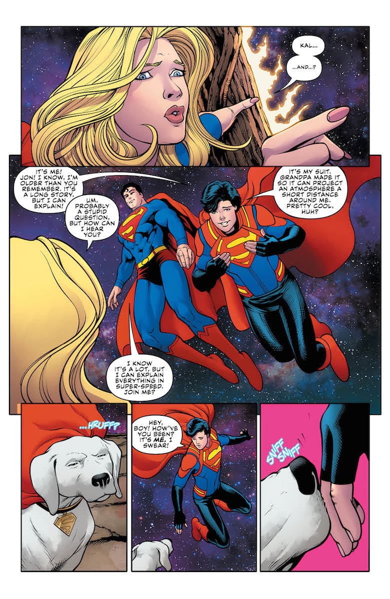 Also, I have to sigh at the continued portrayal of Clark (and sometimes Lois) as the worst parents ever. First, they let Jon go into space with crazy grandpa, then Lois abandons him there because…reasons? Then Clark decides to let him take off with Kara, despite the fact he’s just got him back and that Jon just survived years in imprisoned isolation. “Lois is going to kill me,” Clark thinks. Hell, Clark, I think you need to talk to some of your past selves because this is completely out of character. Batman does better protecting his wards than you do.