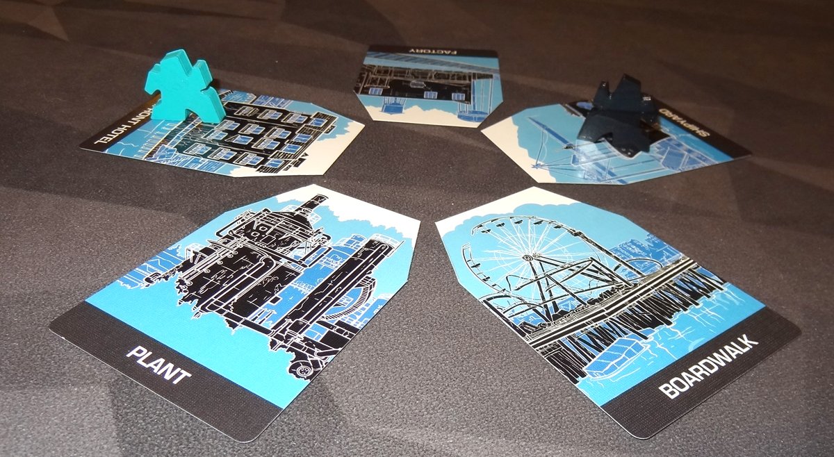 Note: My review is based on a prototype copy, so it is subject to change and may not reflect final component quality. The locations are cards in the prototype but will be cardboard tiles in the finished game. Another change is that the agent meeples in the final game will have snazzy colored neckties painted on them. This prototype included 8 asset cards, but that number may change based on the success of the Kickstarter campaign.