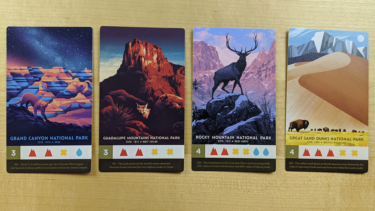 The one criticism I would offer of the game is that the theme doesn’t always completely make sense. The entire point of the National Park System is to provide a resource that every person can share in equally, so the idea of essentially “buying” parks that you and only you benefit from is kind of antithetical to the NPS. But, it’s likely you’ll be having so much fun playing that game that you won’t have to worry about things like that.