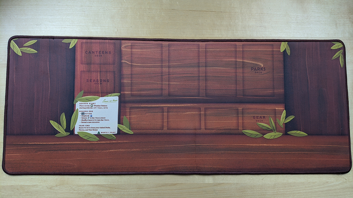 The biggest piece of cardboard in the box is, of course, the game board, but when I purchased PARKS I splurged and also got the neoprene playmat, so we have yet to use the board that is in the box.