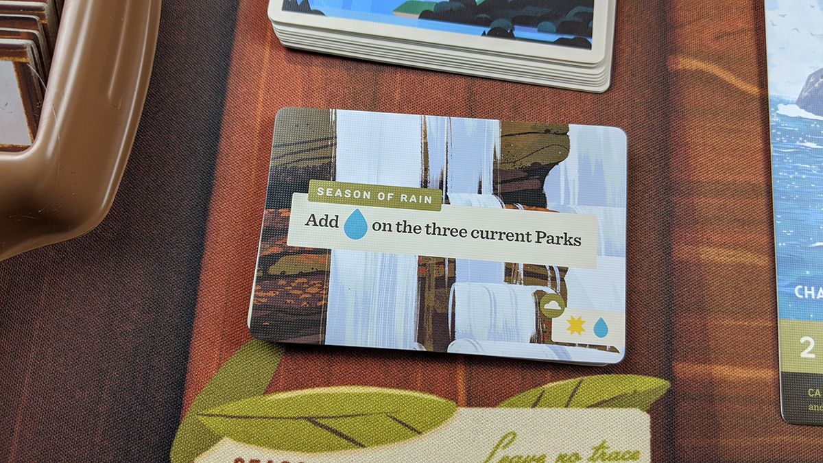 Shuffle the seasons deck and place it on the board, revealing the top card. If the card says to add tokens to the parks, do that now.