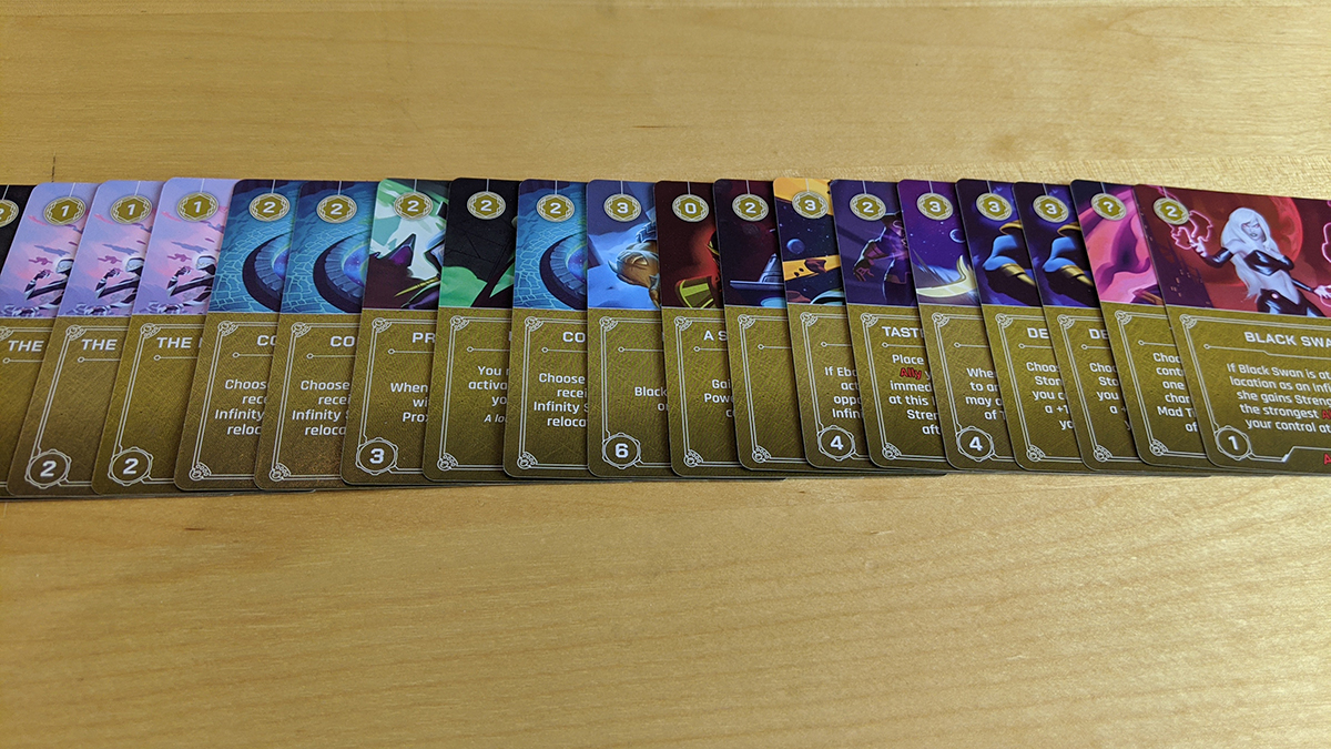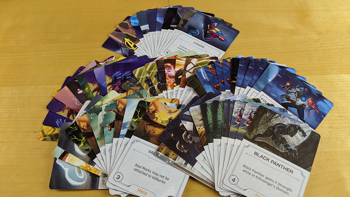 Thematically, there had to be a shared fate deck. Not only would repeating the Avengers in each individual fate deck by silly, but it’d be weird to have two Thors out there. But the way that they took the idea of the shared heroes and then combined in the villain-specific heroes is great, because while we might not be used to seeing Black Panther fight Hela, we understand that that is definitely a thing that can happen in this universe.