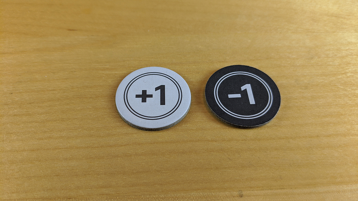 Routinely in the game, both allies and heroes have effects on them that add or reduce strength. In the Disney games, these tend to be temporary effects or are added by cards, but the rules in the Marvel game are such that these bonuses are often permanent, so these tokens to represent those are a requirement here. They are circular cardboard tokens that have +1 on oneo side and a -1 on the other. (While they would at best be a “nice-to-have” feature in the Disney games, I do hope a future edition includes them.)