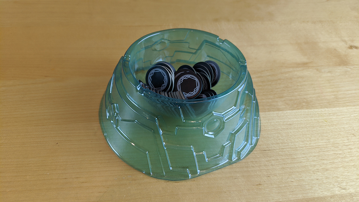 Tha vault is the component that sits in the middle of the table and really just exists to hold the power tokens. As with the movers, this vault is of a much lighter plastic than those from the Disney games, but again, it’s not so light as to look “cheap” or detract from the game at all.