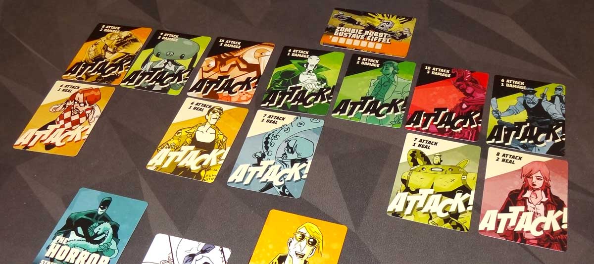 One thing I noticed is that the villains with smaller attack lineups have lower attack values on the back. So your stack of villains will either lead to easier battles and an easier final battle, or harder battles and a harder final battle, simply based on a random draw. I feel like it would make for a more balanced experience if the smaller attack lineups then had higher attack values on the back.