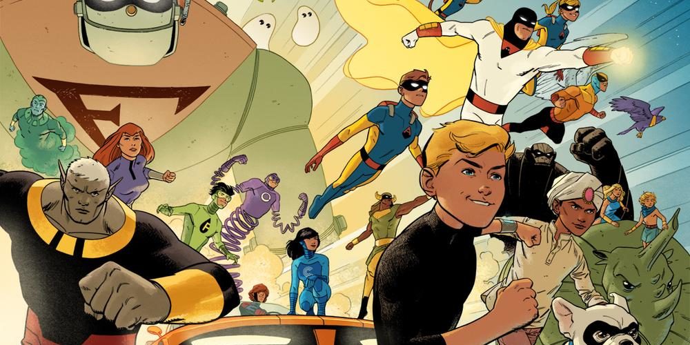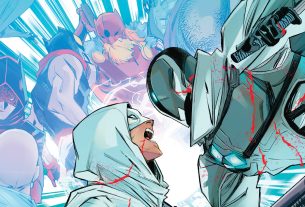 Ray: When Brian Michael Bendis wants to do something unique on his titles, he doesn’t hold back. So when he wanted to celebrate the Legion of Super-Heroes with an art-jam issue, he didn’t just get five or ten artists – he got twenty, picking them from every corner of the comic book world from DC legends to indie names just starting to break out. Every artist takes on one page of his script (or a double-page spread, in two cases) but this isn’t an anthology. It’s actually a pretty straightforward story that takes place immediately after last issue’s cliffhanger, which saw Ultra Boy’s evil father attack and demand to take the Legion into custody for trial on his world. That’s a bit complicated, because the Legion are subject to United Planets law – but Rimbor seceded and is claiming jurisdiction. This should be settled diplomatically and – oh, who am I kidding, it’s going to be settled with punching.