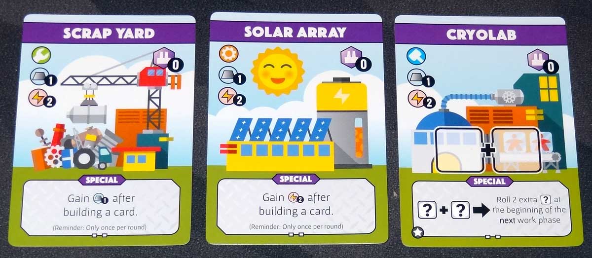 - Special buildings have various effects, from gaining extra dice to giving you building bonuses.