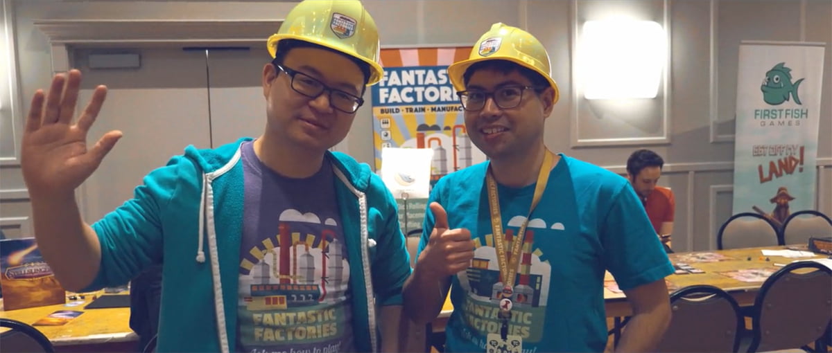 If you’ve attended a game convention in the past couple years, you might have seen these two guys wearing hard hats. Joseph Chen and Justin Faulkner, the designers of Fantastic Factories, have been working on the game for a few years now, running demos and playtests, getting feedback, and refining it. All that work really shows: Fantastic Factories hits that tricky balance of being easy enough not to overwhelm your casual gamers, but with enough depth to keep your strategy gamers engaged.