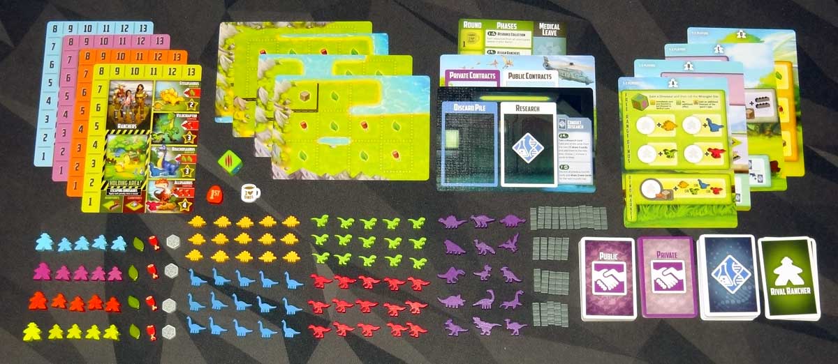 At the end of the game, players score points for contracts and research cards, as well as any standard dinosaurs they have on their ranch. Highest score wins, with ties going to the earliest player in turn order.
