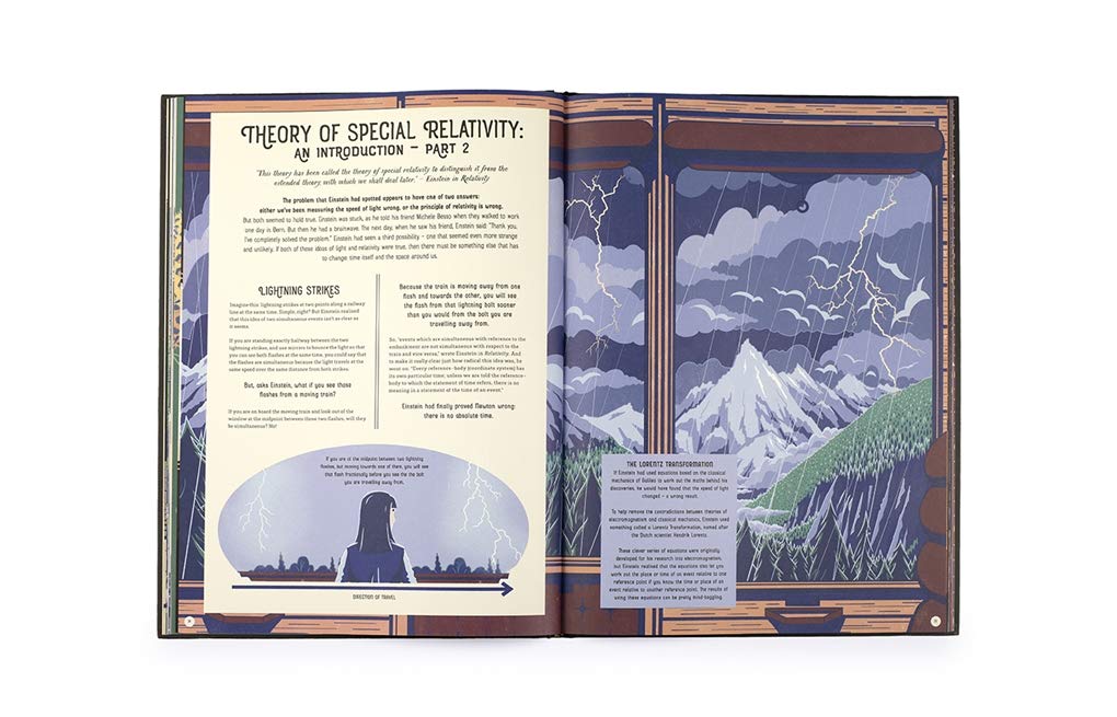 The artwork in the book is excellent; affording a deeper understanding of what the text is explaining. If you have an inquisitive child this is a great place to start. If you want to brush up on some higher-level physics, but don’t know what you don’t know, then this book provides an engaging platform from which to launch your investigation – before, say, moving onto the books of Roger Penrose, who has just been awarded one half of a Nobel prize for his own work with relativity. Although the work in this book is over 100 years old, its application and investigations are still cutting edge!