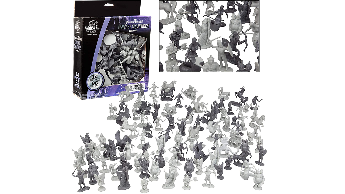 Or for a more cost-effective and unpredictable result, you could always go full hog and get them a 98-piece set of assorted miniatures for only $24.95. This will surely provide more than enough wizards, pixies, knights, goblins, and two-headed demons to keep you busy in any D&D campaign.