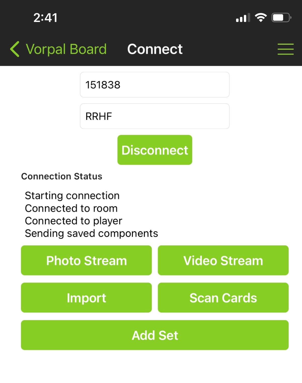 I adjusted the boom arm for my cellphone, set the Vorpal app to streaming, and was ready to go for live images in the game. You can choose between two different types of streaming: photo, which has a poor refresh rate but a high resolution, or video, which has a higher refresh rate and adjustable resolution. As I wanted my players to be able to see as much detail as possible, I chose to run my session in photo mode.