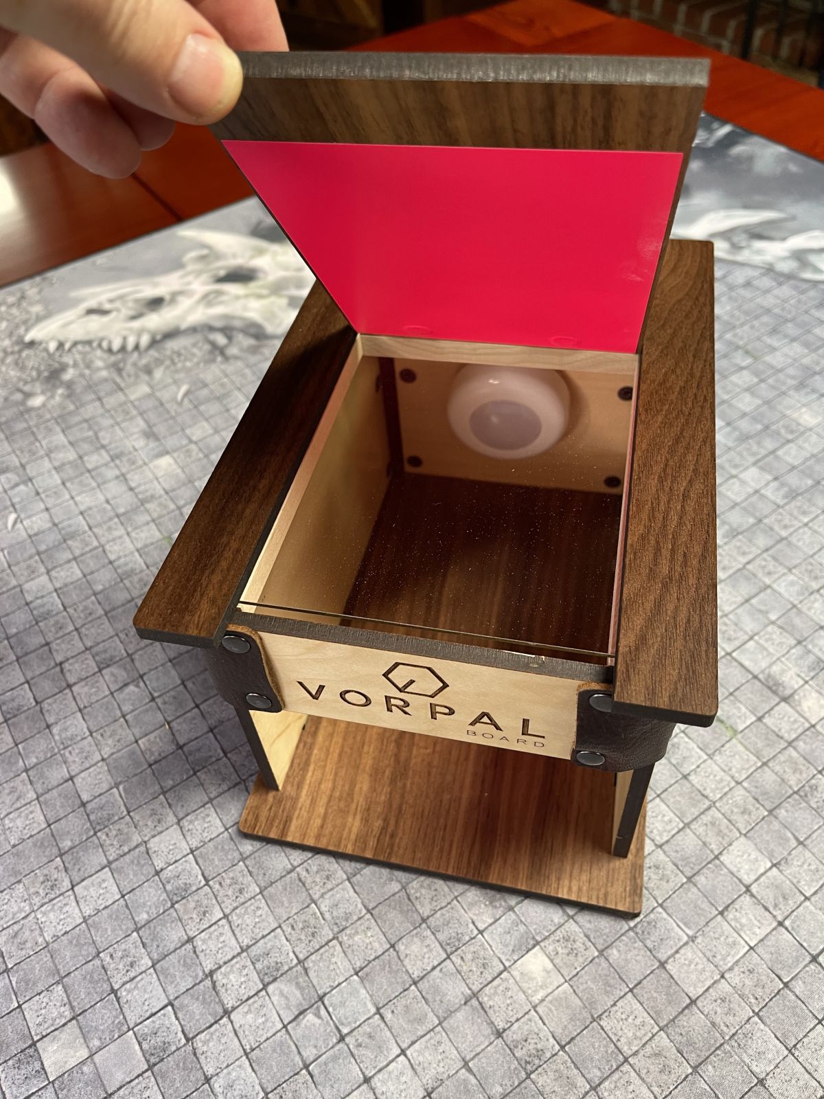 The brainchild of James Lang, Thad Casey, and Mike Moede, Vorpal Board hit Kickstarter in January 2020, with delivery in late fall of 2020. The three formed Vorpal Enterprises, and set out to create a system whereby you could play your favorite games online, using actual game pieces, with anyone who had an internet connection. Little did Vorpal Enterprises know just how good the timing of their invention would be when they launched their Kickstarter, given that so many of us around the world were, and still are, social distancing.