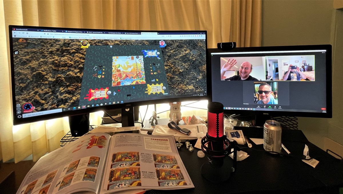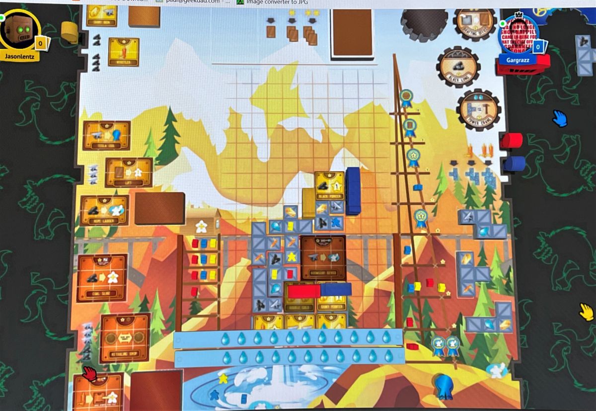 Note: While Bezier Games sent me out a physical copy of the game to review, thanks to the pandemic, I chose to play Whistle Mountain with some friends on Tabletopia. While it would definitely be more enjoyable to play in person (especially with all the delightful components), the digital version worked out surprisingly well. Plus, I was able to play with both my friend Chris in Los Angeles and my friend Jason in Sweden, which would have been a difficult task to pull off even if there wasn’t a global pandemic. (Though I should mention that Jason suffered from a lot of lag and disconnects, which Chris and I did not experience.)