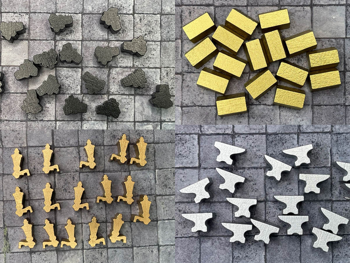 All of the different collectible resources in the game are also wooden. Here are all of them except the water tokens, which are represented by blue droplets: