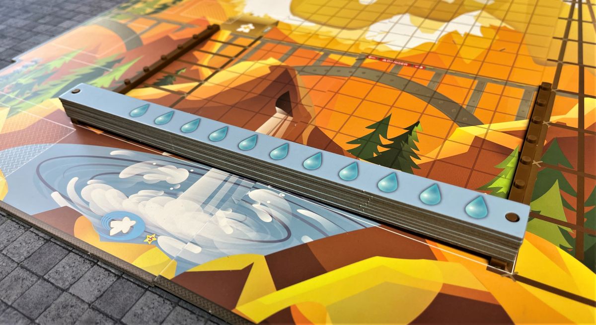 There are also notches in the two bottom board pieces to accommodate the plastic water bar holders. The water bars provide a physical and visual representation of the rising waters that occur during the course of the game.