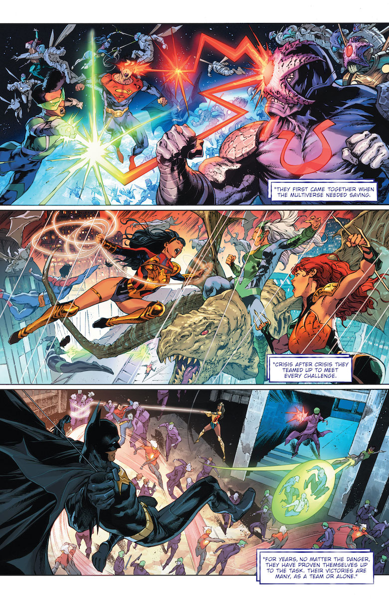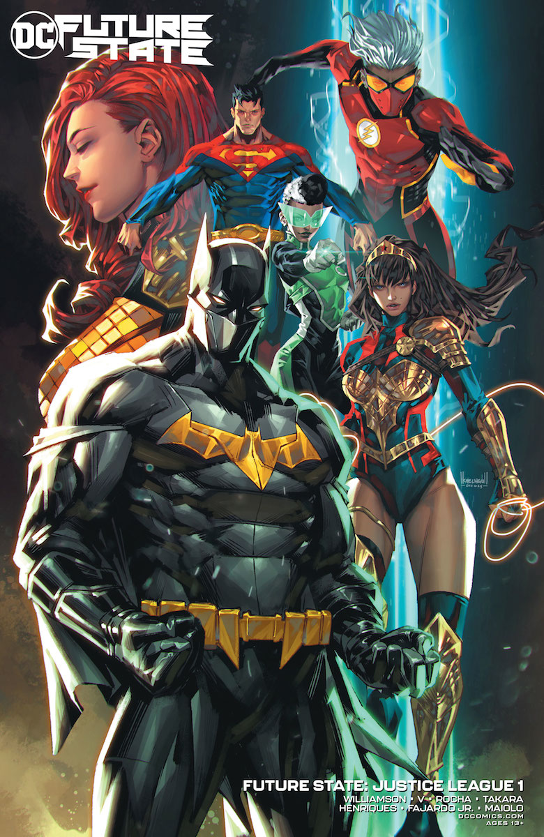 Future State: Justice League #1 – Joshua Williamson, Ram V, Writers; Robson Rocha/Daniel Henriques, Marcio Takara, Artists; Romulo Fajardo Jr, Marcelo Maiolo, Colorists