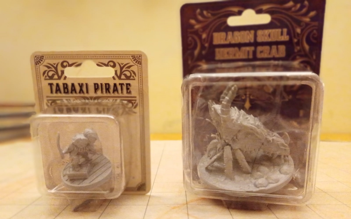 The unique sculpted minis you get in the first box are a cool tabaxi pirate and dragon skull hermit crab.In each dungeon in a box you’ll also get a fantastic map of the Great Sea—I love a good map and this will go in the collection ready for future adventures when my players decide they want a pirate adventure halfway through a campaign.