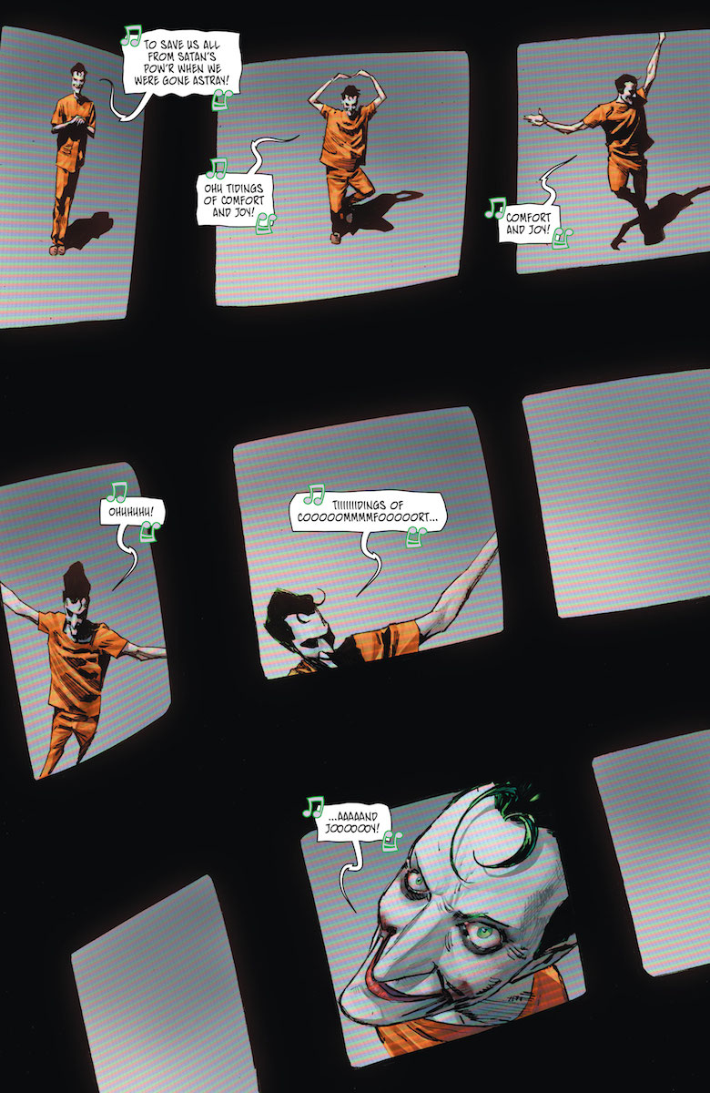 More of the action takes place in the two past timelines, and I have to say—King’s Joker is terrifying. He’s not nearly as inhuman as Snyder’s version, but he may be even more compellingly sadistic. This is someone who likes suffering of any kind—both physical and psychological. It’s a smart move not to actually show us his crime scenes, as King’s dialogue lets us imagine what he’s up to. He seems to take great pleasure in pitting Selina between her two worlds, with a deeply creepy visual towards the end of the issue. And then there’s Phantasm, who continues to be used highly effectively. A confrontation with Selina this issue is the most in-your-face the mysterious antihero has been so far, and the first scene to not show her as completely indestructible. This is a character whose arrival has been built up for some time, so King is smart not to show all his cards immediately. This is definitely inspired by King’s more stand-alone, cerebral work as much as his Batman run, and it’s paying off.