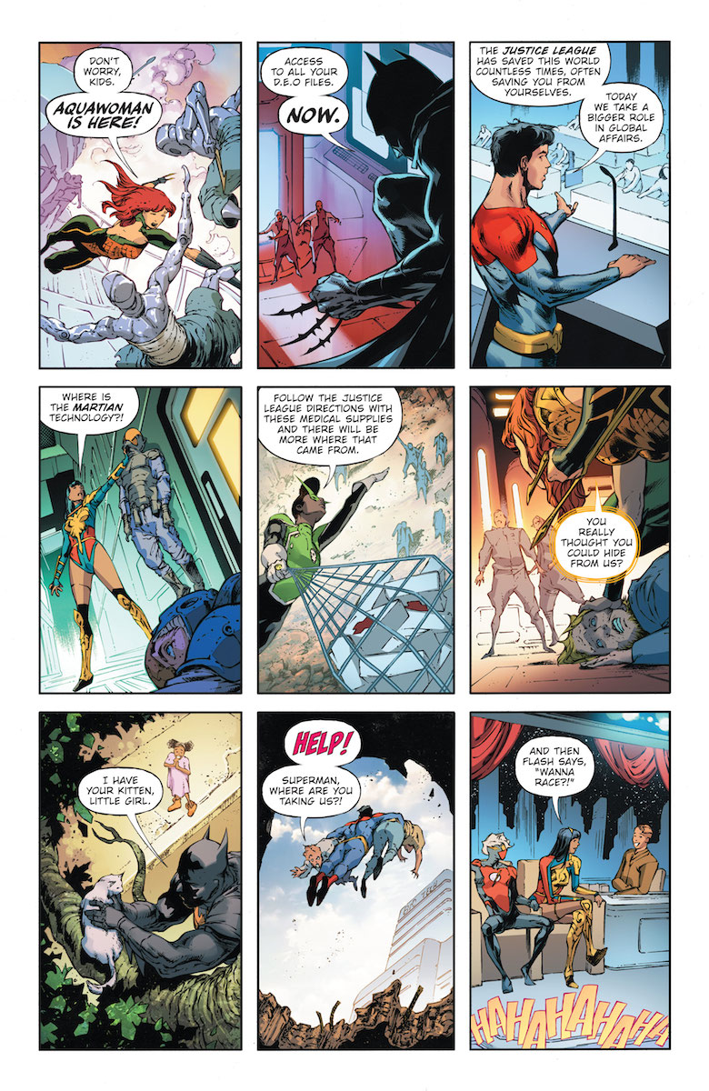 Ray: While the first issue of this series had a lot of heavy lifting to do to introduce us to a Justice League with a very different dynamic, this issue gives us not one—but two. The squad has been captured and replaced by the evil white martians known as the Hyperclan. While these villains win the support of the public and try to put into play their leader’s plan for revenge, the real Justice League finds themselves trapped on a desolate fire world with little hope for survival—and growing tensions among their own numbers.