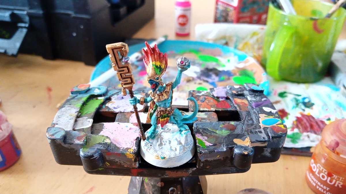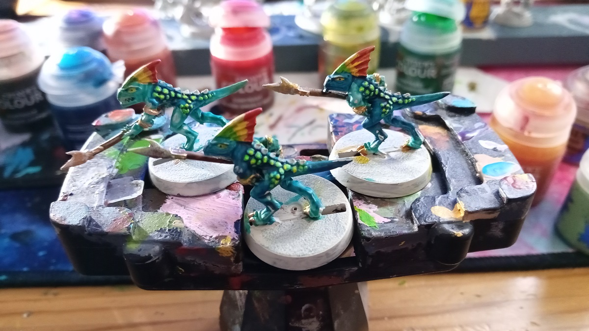 Looking online there are a whole host of exciting color schemes and painting styles you can use for the Seraphon, so I did my best at ignoring them all and finding my own way of ruining these models. Although, this time, I’m pretty pleased with the results. Probably my best efforts using Citadel Contrast Paints so far.